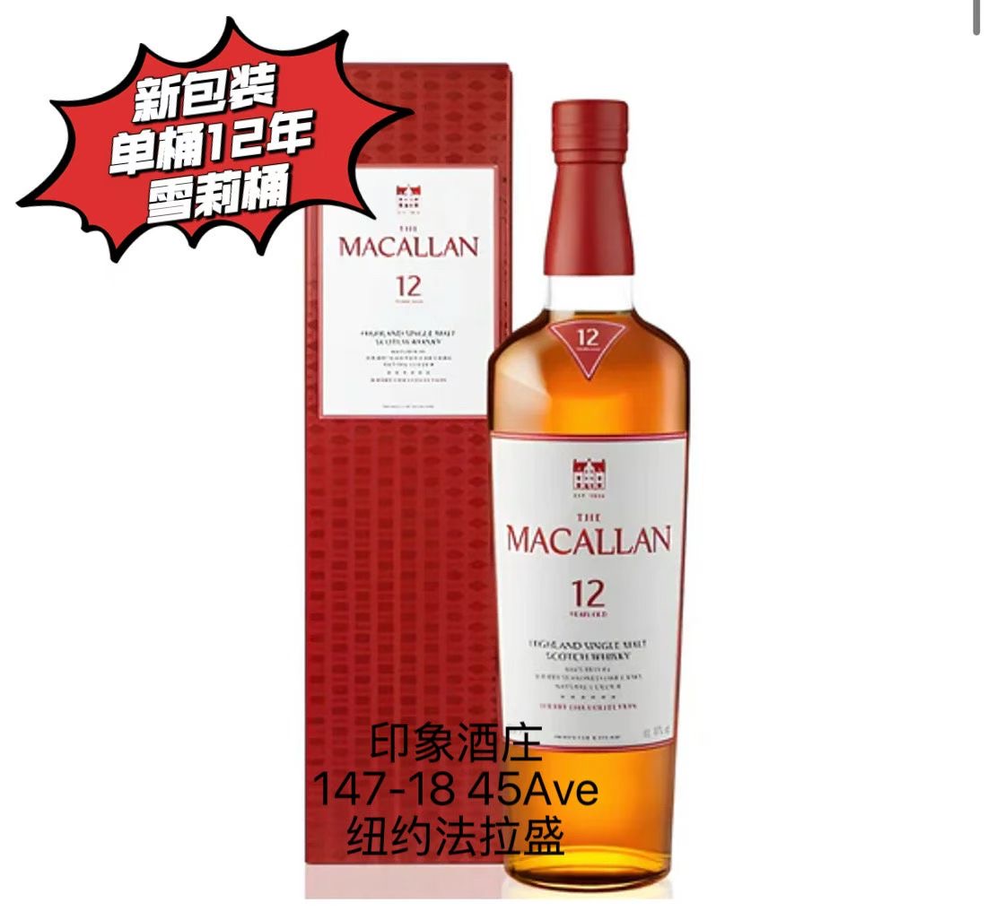 • Macallan 12年 新包装 雪莉桶 —— 雪莉桶典型风味,入口顺滑,收藏与自饮兼具