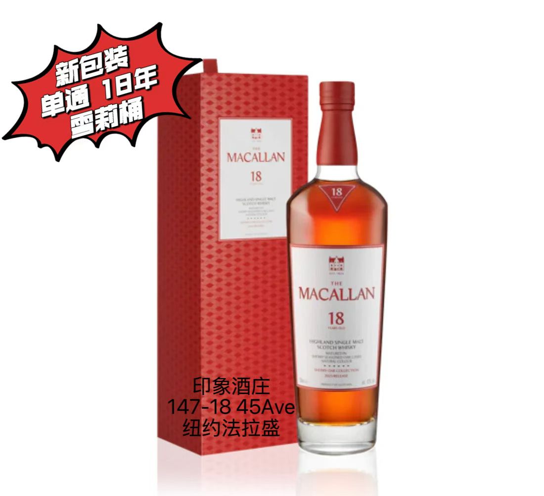 • Macallan 18年 新包装 雪莉桶 —— 高端口感升级版,酒香浓郁,酒体优雅