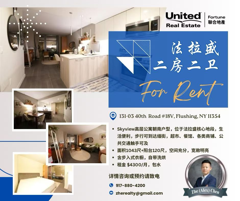 🚇 生活便利:位于法拉盛核心生活区,楼下即是商场,步行可到达Main Street,商场、超市、餐厅、公园、LIRR、7号地铁