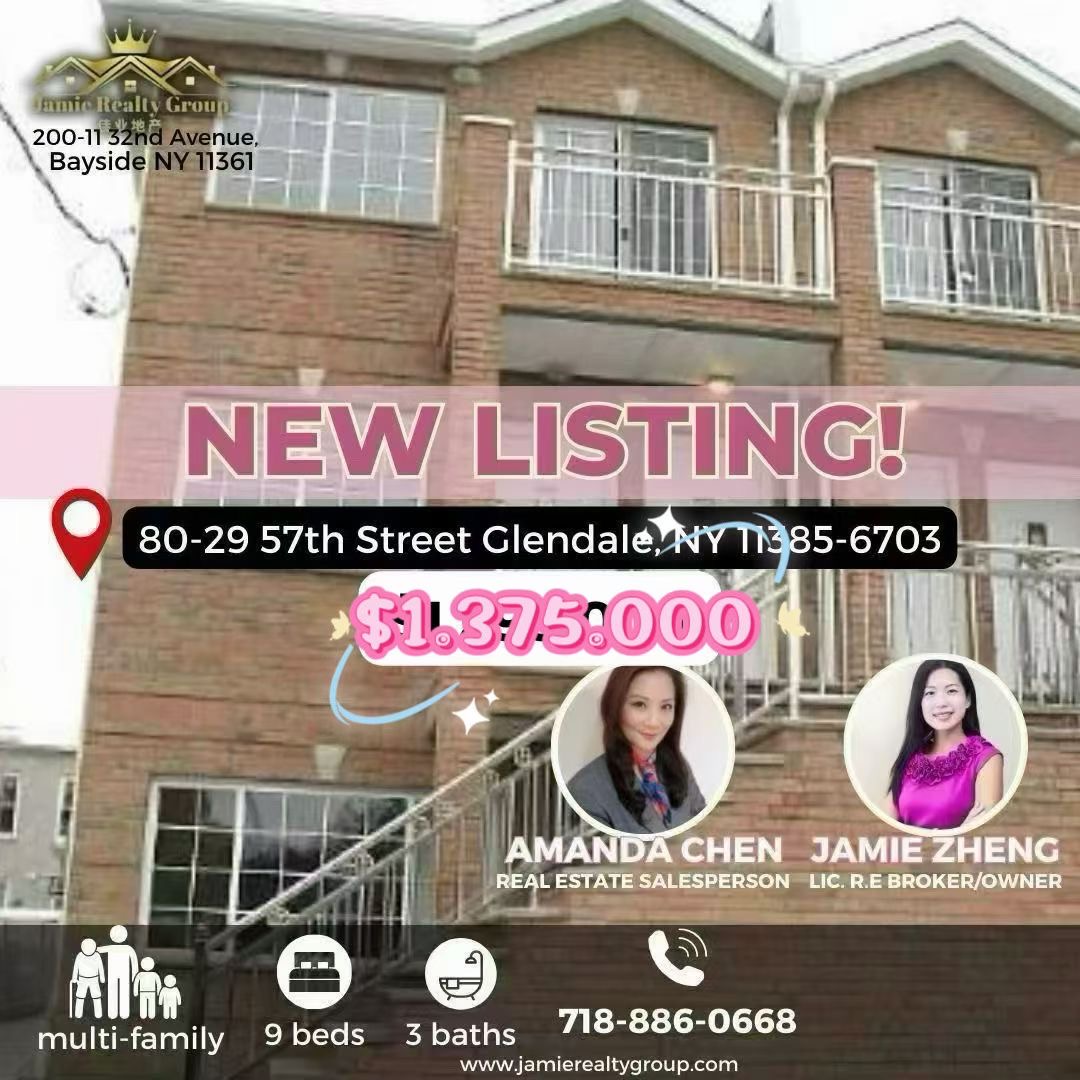 佳业地产最新上市!位于 皇后区 Glendale 核心地段 的三家庭独栋住宅,房屋结构坚固,建于 2007 年,每层户型独立,适合 多家庭居住或出租投资。