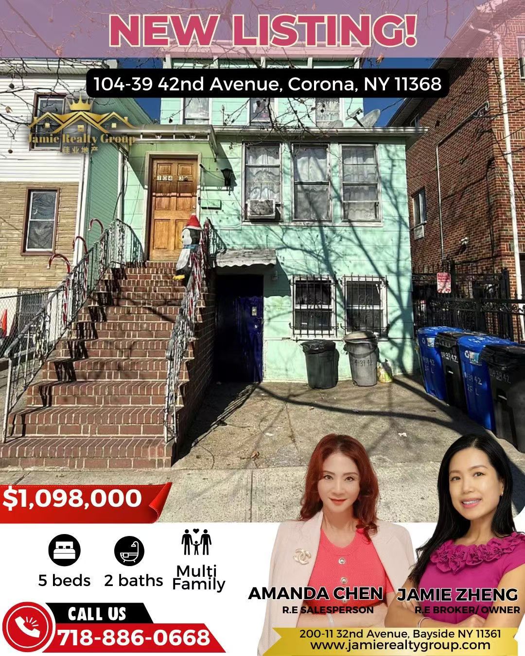 位于 Corona 中心地段,42 Ave & 104-39,生活便利,周边商店、餐厅、公园及学校齐全。临近 Q14 和 Q23 公交线路,轻松直达法拉盛及曼哈顿,通勤与出行都十分便利。