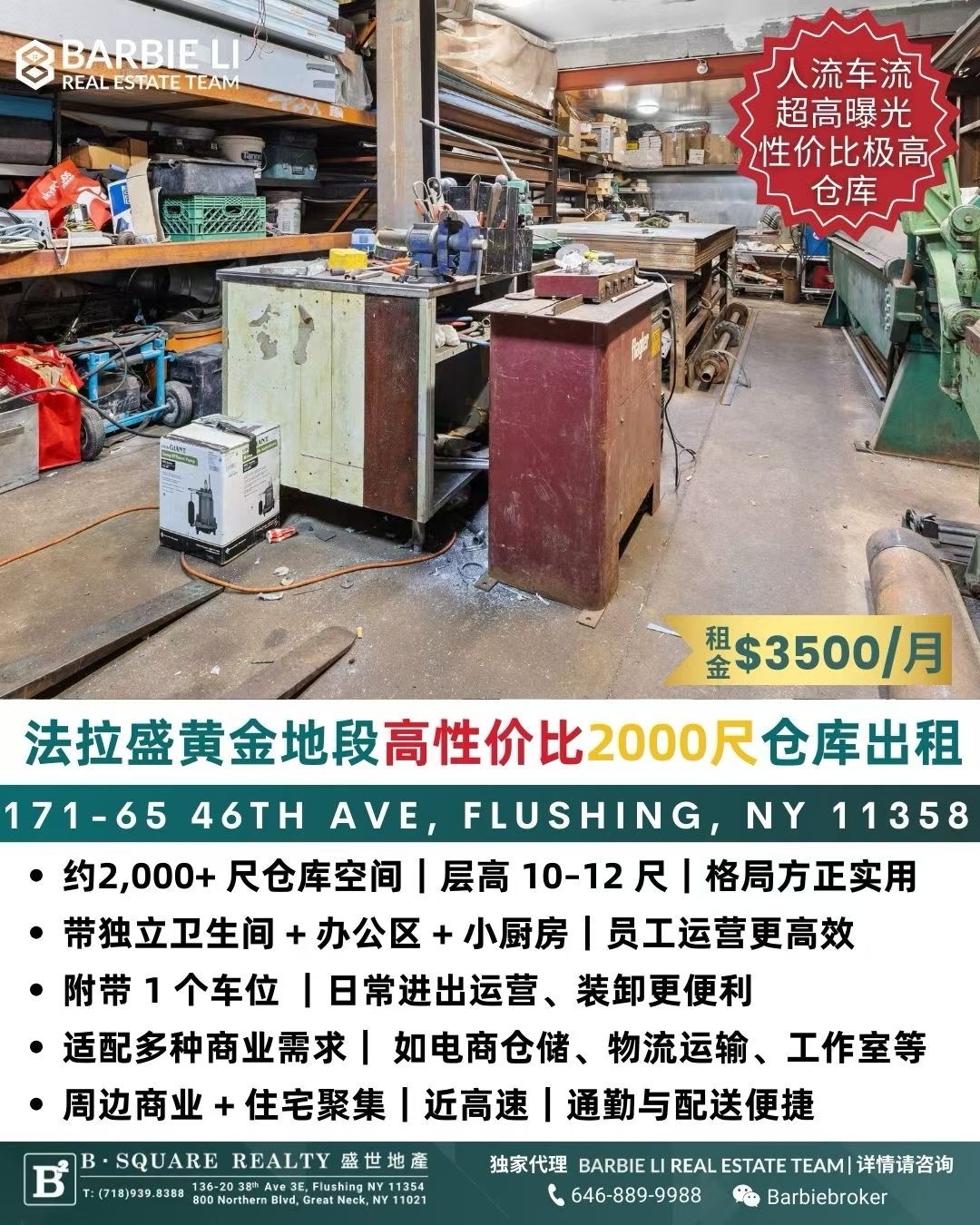 🎯 法拉盛黄金地段|高性价比 2,000 尺仓库出租