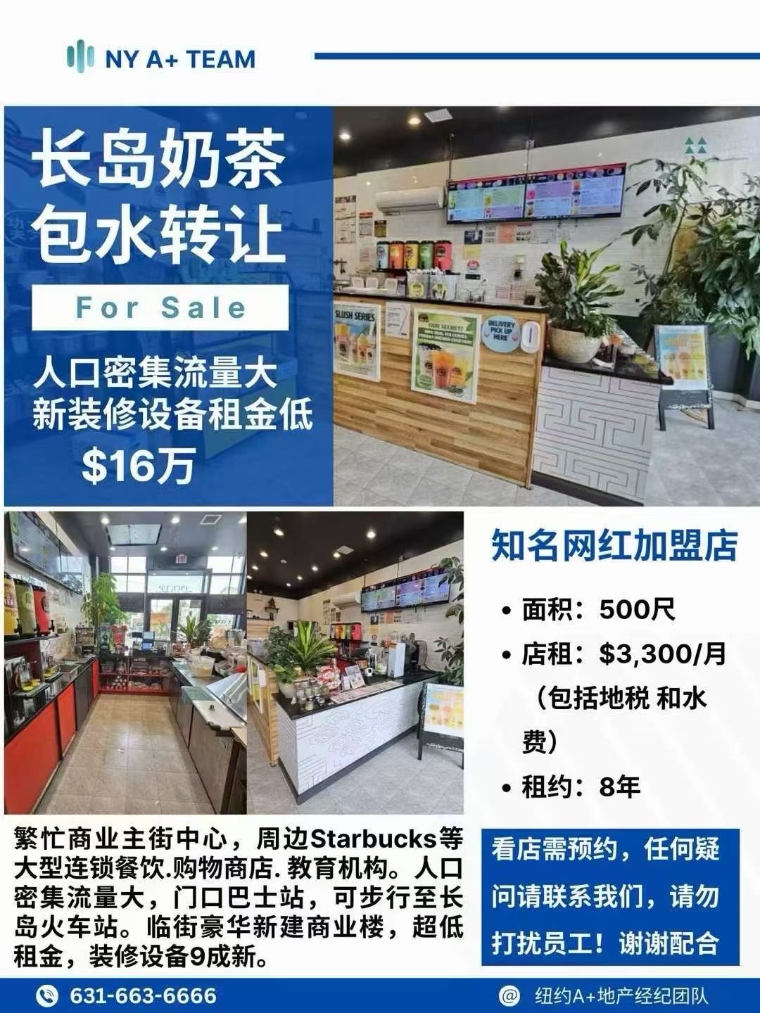 纽约多区奶茶店连锁现低价转让,共 9家门店,分布于贝塞、法拉盛、康州、长岛、史丹顿岛及曼哈顿等核心商圈。店铺均为精致装修,配备现成设备,可直接运营,也可灵活改造成咖啡店、寿司店或甜品店,投资灵活性极高,适合创业或连锁扩张。