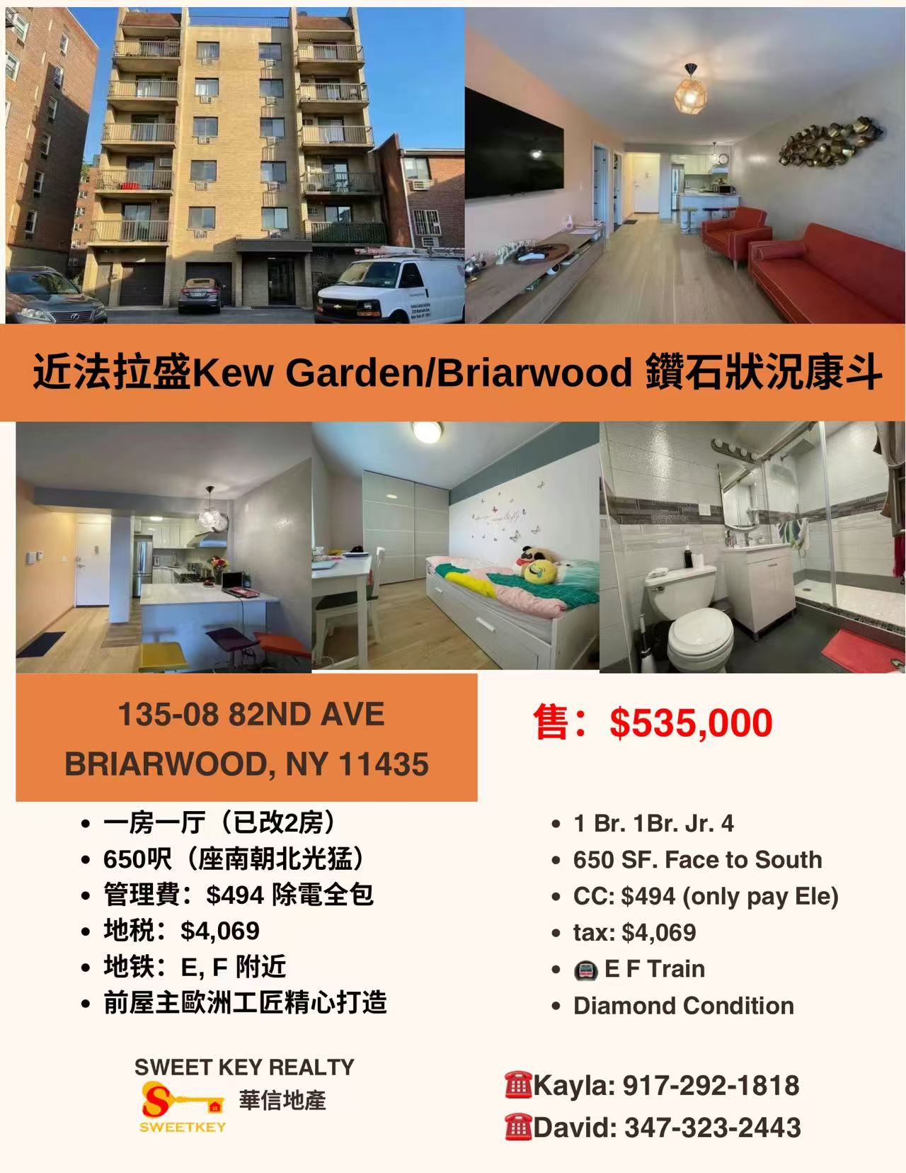 近法拉盛!Kew Garden/Briarwood 钻石状况康斗