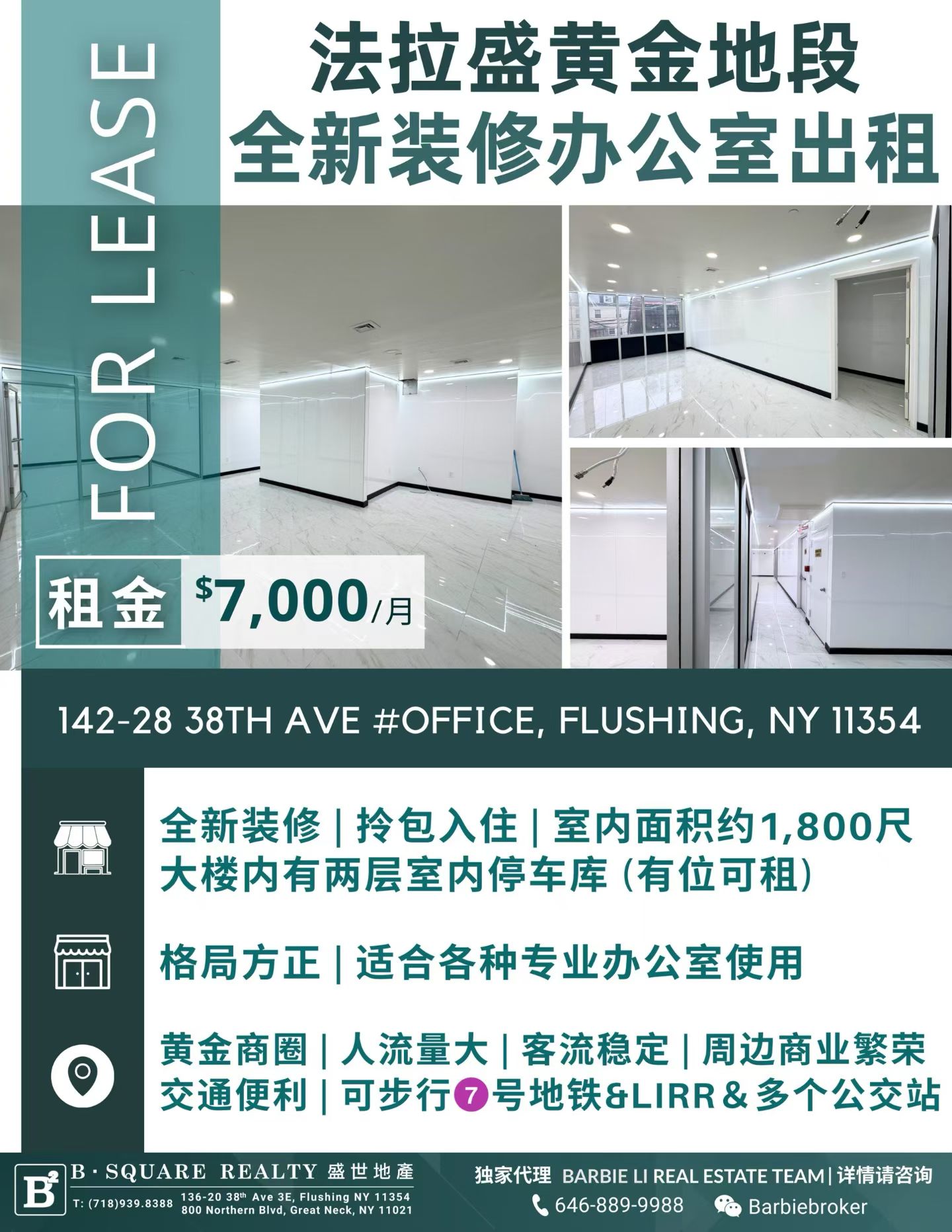 📢法拉盛黄金地段📢全新装修办公室出租‼