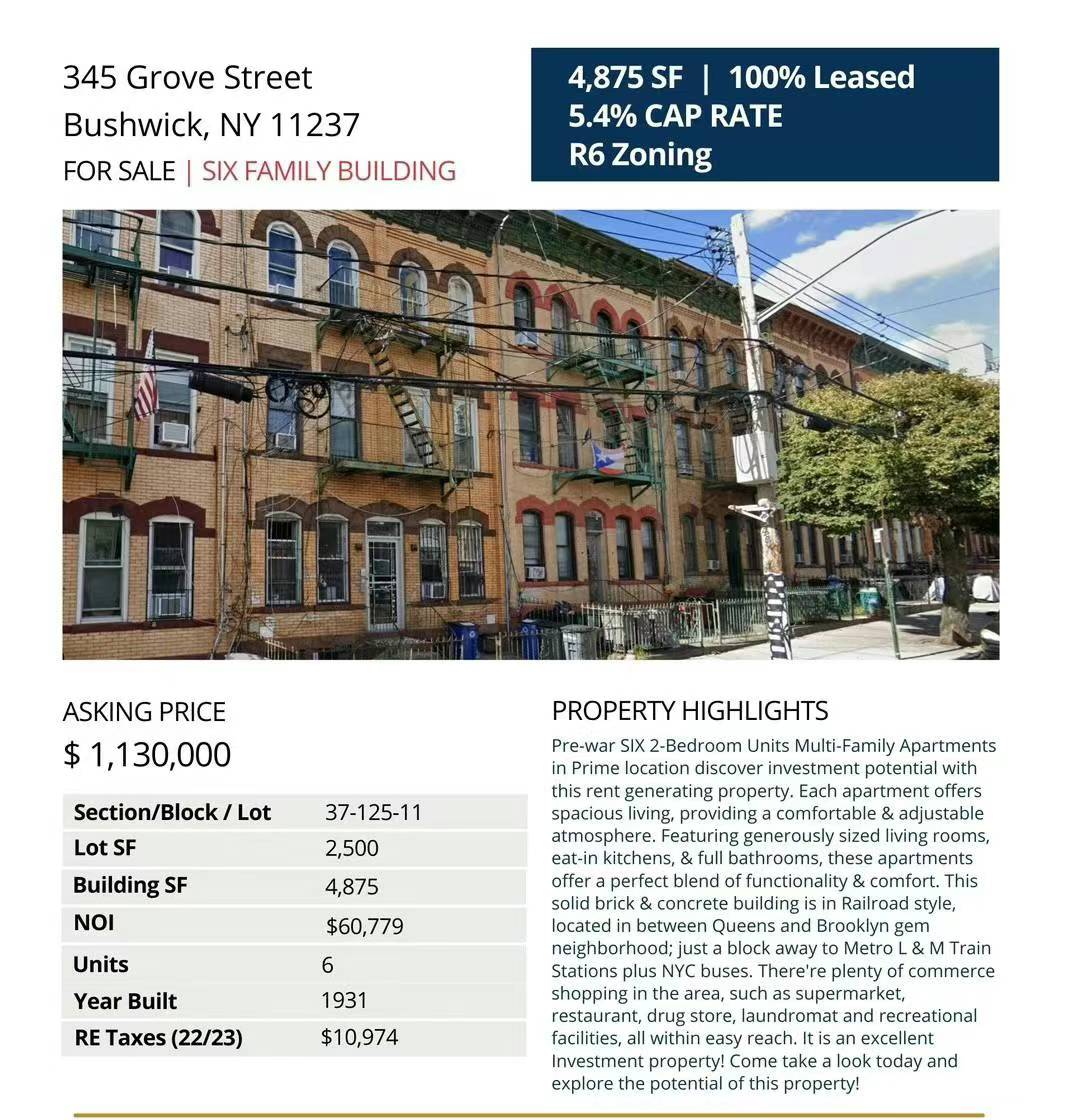 🔹这个坚固的砖混建筑是铁路风格。R6 Zoning 位于皇后区和布鲁克林宝石街区之间,黄金地段;距离L 和 M 地铁站以及巴士站仅一个街区。