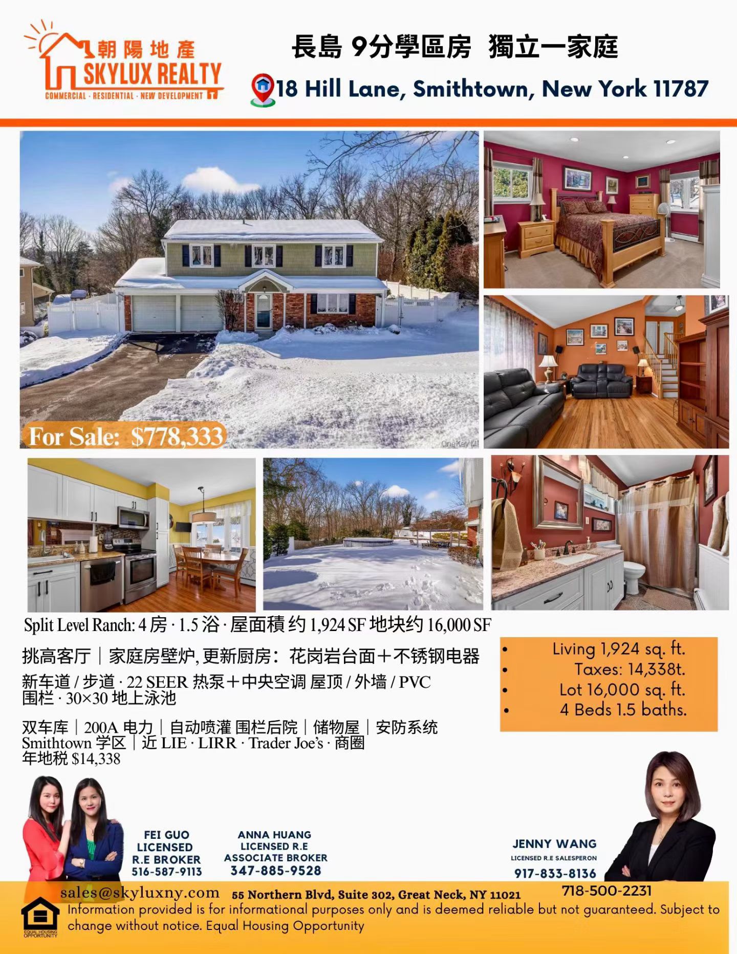 📍地址:18 Hill Lane, Smithtown, NY 11787💰售价:$778,333