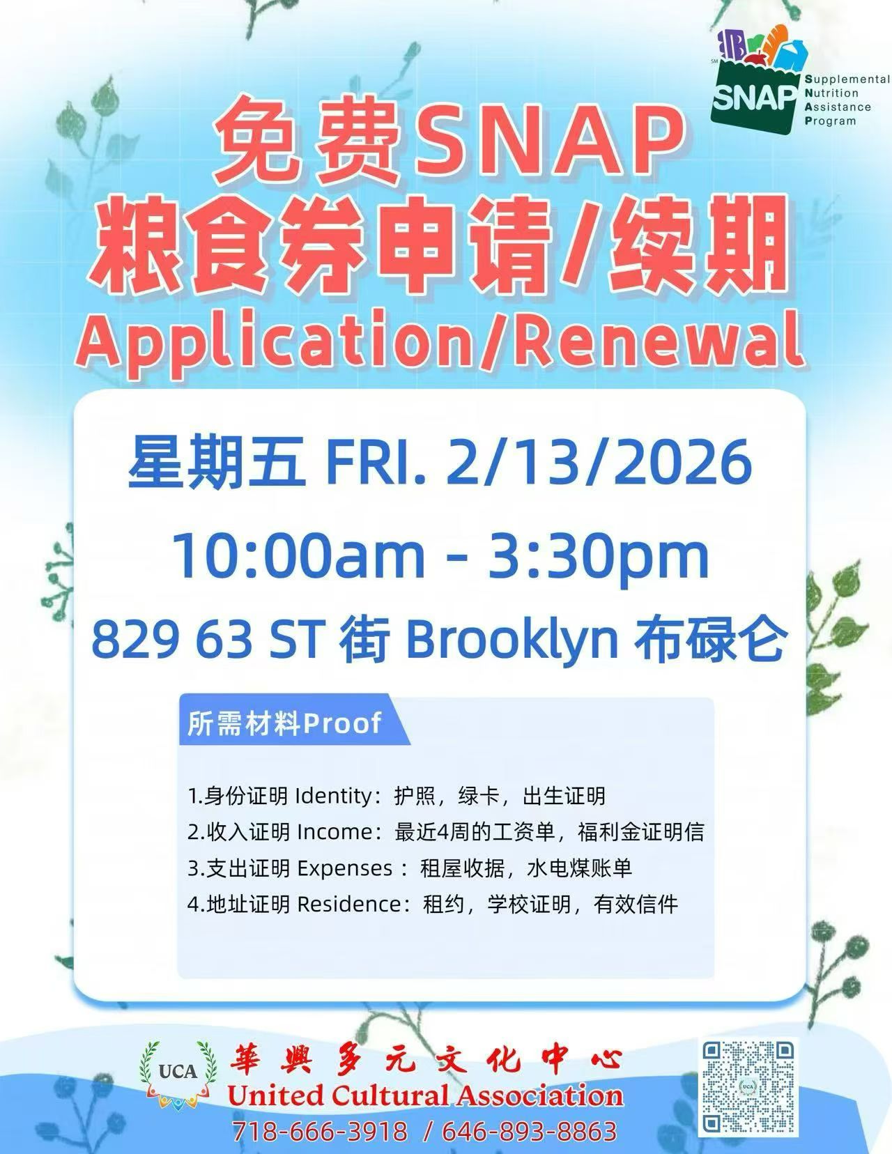 布鲁克林华兴多元文化中心特别举办“粮食券申请/续期免费协助日”活动,为社区居民提供面对面专业帮助,现场有工作人员一对一指导,协助填写表格、递交材料,帮助您顺利完成申请或续期手续。