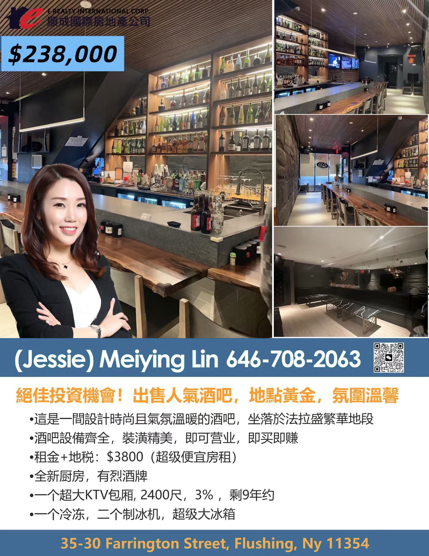 法拉盛最繁华商圈的一家人气酒吧+餐厅现诚意转让。店铺地理位置优越,人流稳定,装修精美、设备齐全,接手即可无缝经营,是想创业或扩展餐饮版图的绝佳选择!