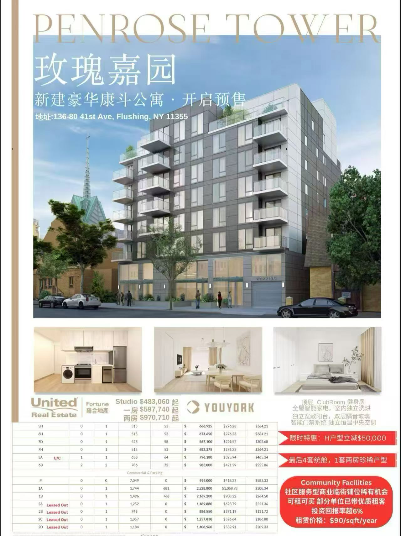 Penrose Tower法拉盛精品公寓不仅地段优越、交通便利,还拥有全套高端设施与精致户型设计,是华人自住投资的首选。最后两套Studio特惠,错过不再,抓紧机会实现您的安居投资梦想!