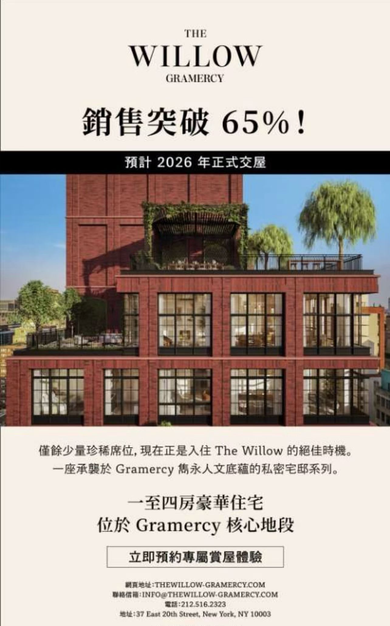 The Willow不仅是一处住宅,更是一份曼哈顿核心资产投资机会。高端红砖建筑、顶层私享露台、Rockwell会所级设施、黄金地段资源稀缺,错过即是下一轮价格上涨后的遗憾。立即预约专属看房,把握曼哈顿精英生活与资产配置先机!