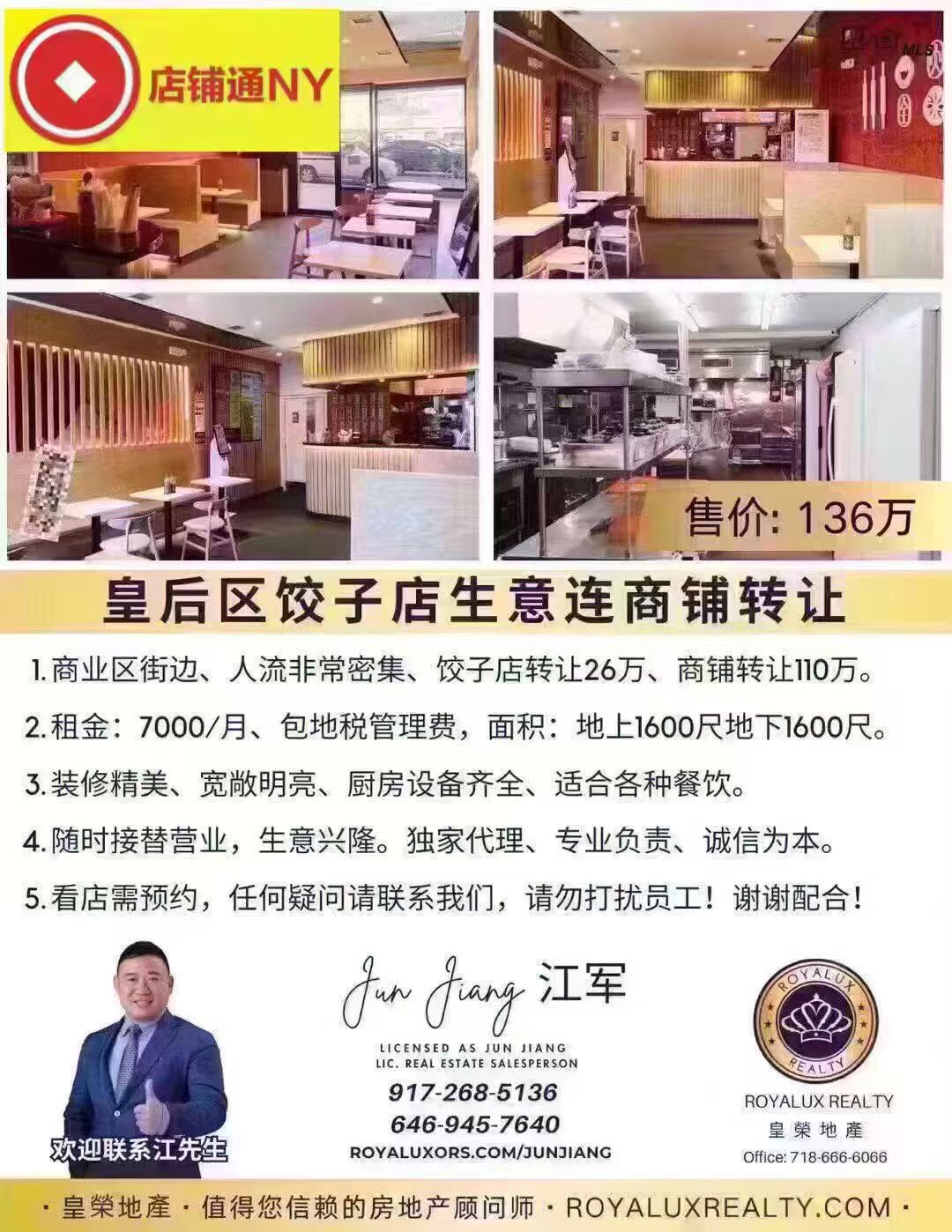 投资餐饮店铺不仅是财富增值的途径,更是布局纽约商业地产的重要策略。皇后区和法拉盛作为纽约华人及多元族群聚集区,餐饮消费频繁且稳定,优质店铺租金合理、回报率高。对自营者来说,可快速实现营业收益;对投资者而言,可通过转让、出租或长期持有获取可观收益。