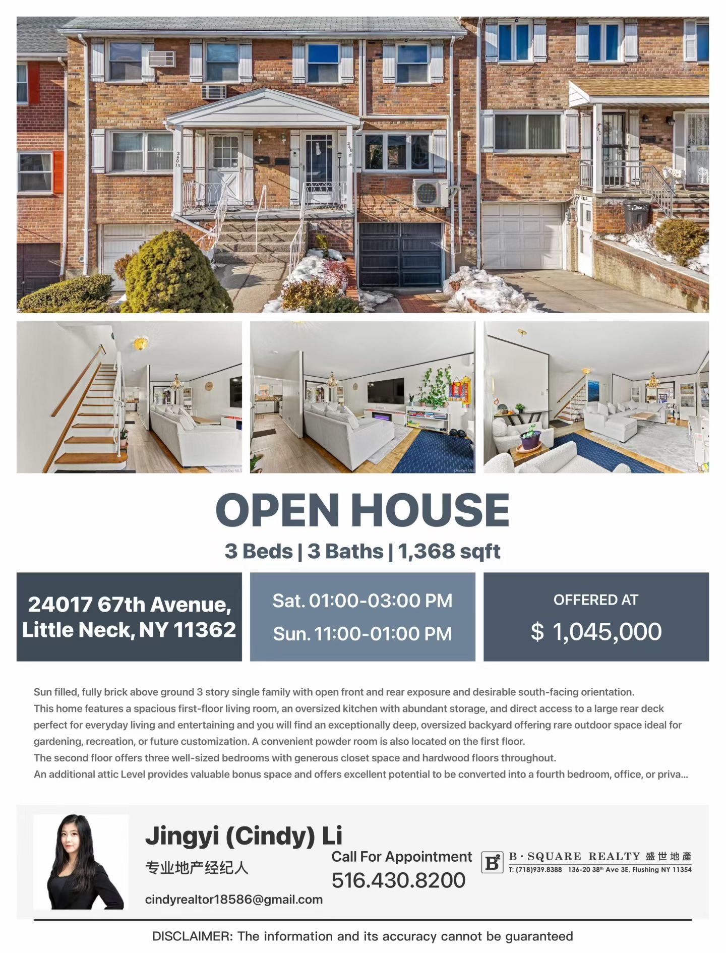 如想亲自体验这栋宽敞、采光极佳的全砖单户住宅,请联系专业地产经纪人Jingyi (Cindy) Li安排: