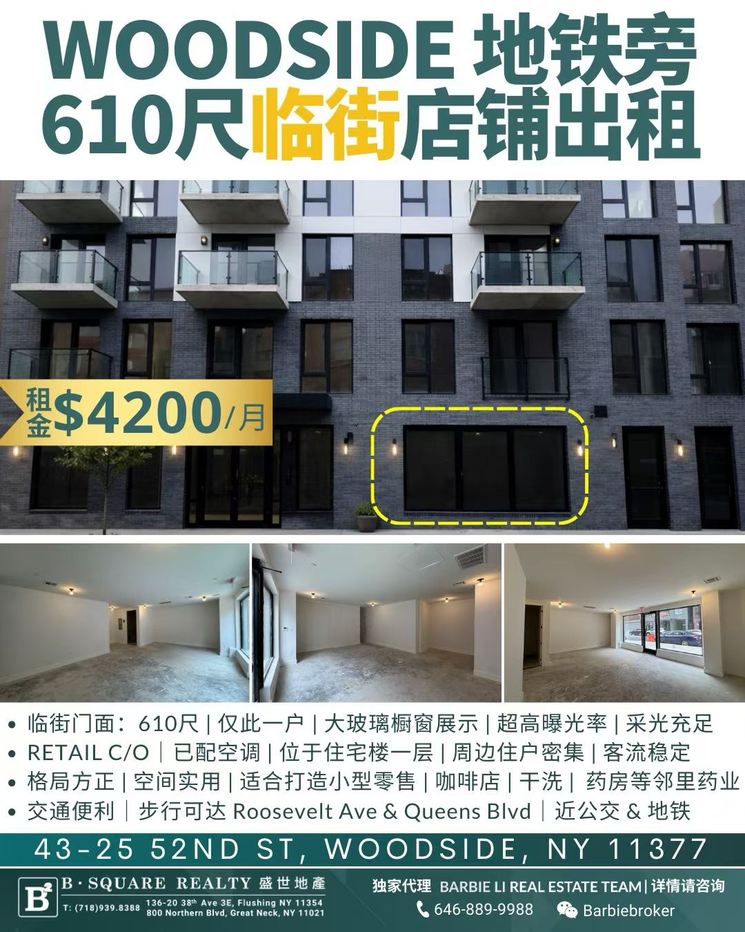 • 位于Woodside皇后区住宅区一楼,周边居民密集,人口稳定