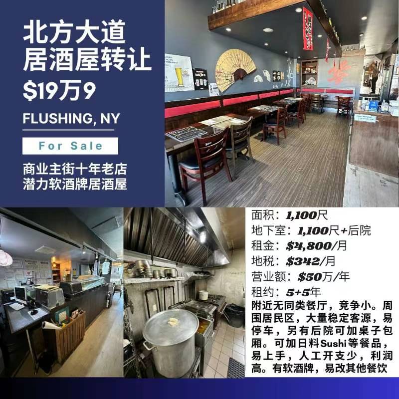🎊最新价格调整19万9🎉🆕周二下午2点统一看 需预约🏮法拉盛北方大道带软酒牌拉面居酒屋出售🏮