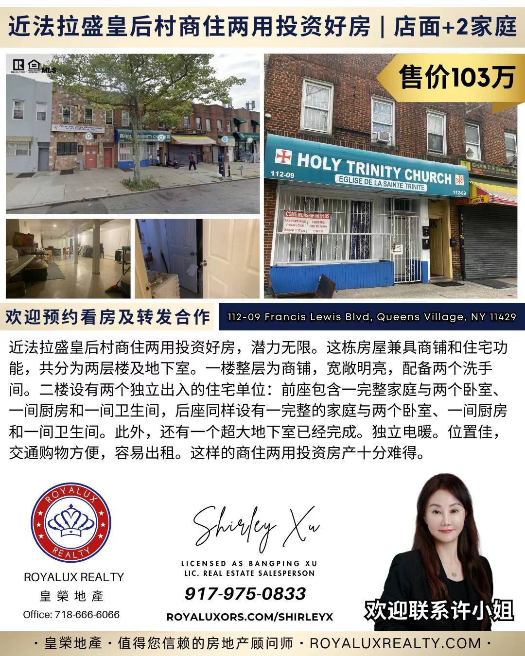 👑近法拉盛皇后村商住两用投资好房 | 店面+2家庭