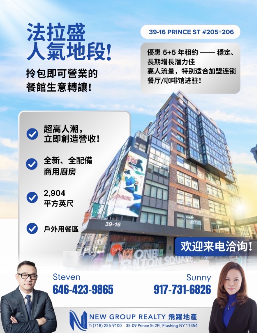 如果你正在寻找法拉盛餐厅出租或纽约核心区餐饮铺位,这间商铺或许正是你下一步布局的关键节点。优质位置不会长期等待,市场也永远青睐准备充分的经营者。