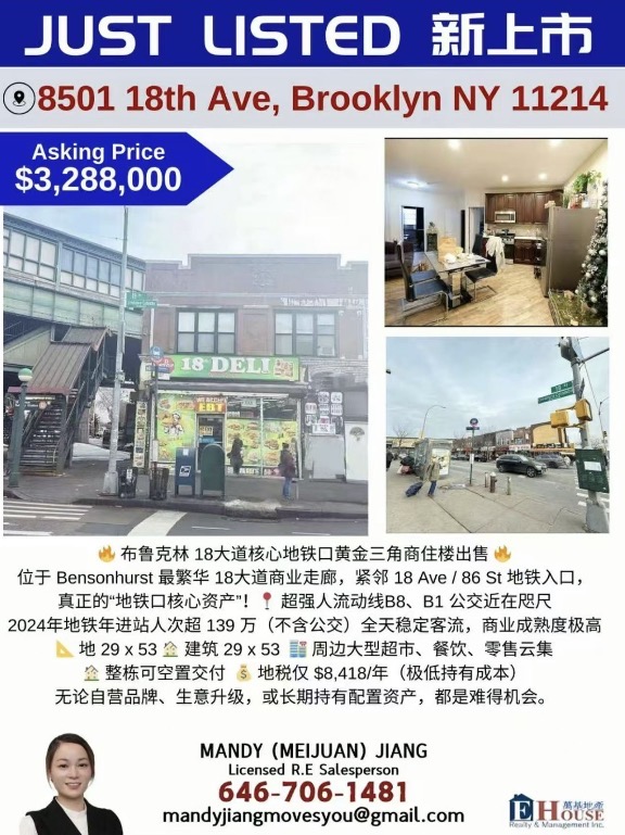 无论是开设品牌门店、升级现有生意,还是长期持有配置资产,这栋 18大道黄金角楼都堪称难得机会。核心地段与稀缺物业形态,使其升值潜力巨大,是布鲁克林商业地产中的佼佼者。