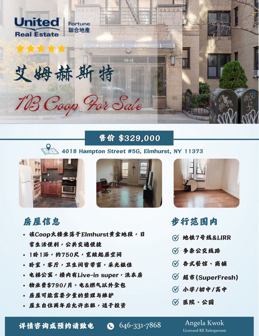 📞 预约看房或咨询请联系:646-331-7868