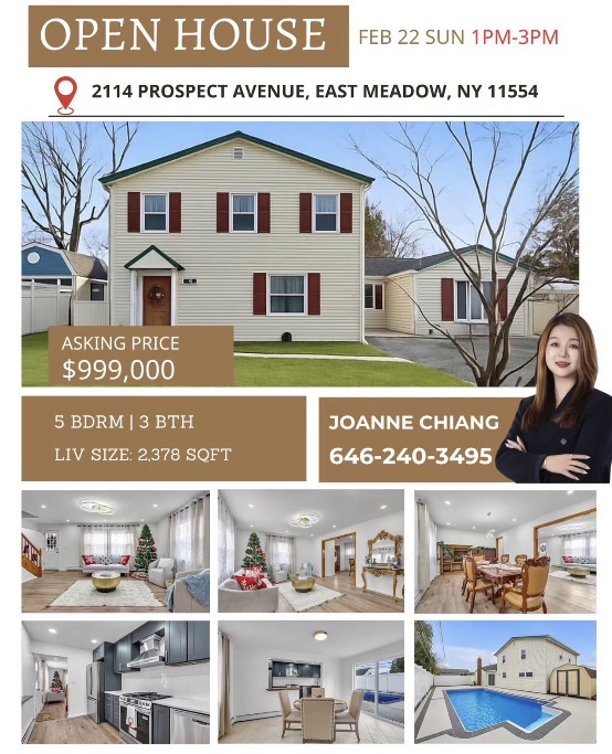 本周末,凯盛地产邀您参观三套精选独栋住宅,涵盖East Meadow、Beechhurst和Jamaica高品质房源。户型宽敞、格局合理、采光充足,适合家庭自住或投资。每套房源均提供周末Open House时间,提前预约即可实地体验舒适生活空间。