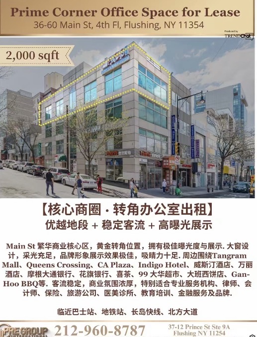 • 地址:Flushing, NY|Main St 转角黄金商铺
