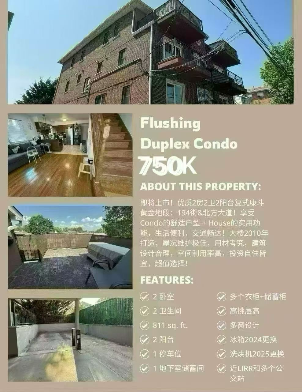 复式康斗在法拉盛北区并不常见,尤其同时具备双阳台、室内车位与独立储藏空间的户型更为稀缺。对于追求空间分层、生活品质与交通便利的买家来说,这是一个兼顾实用与升值潜力的优选。