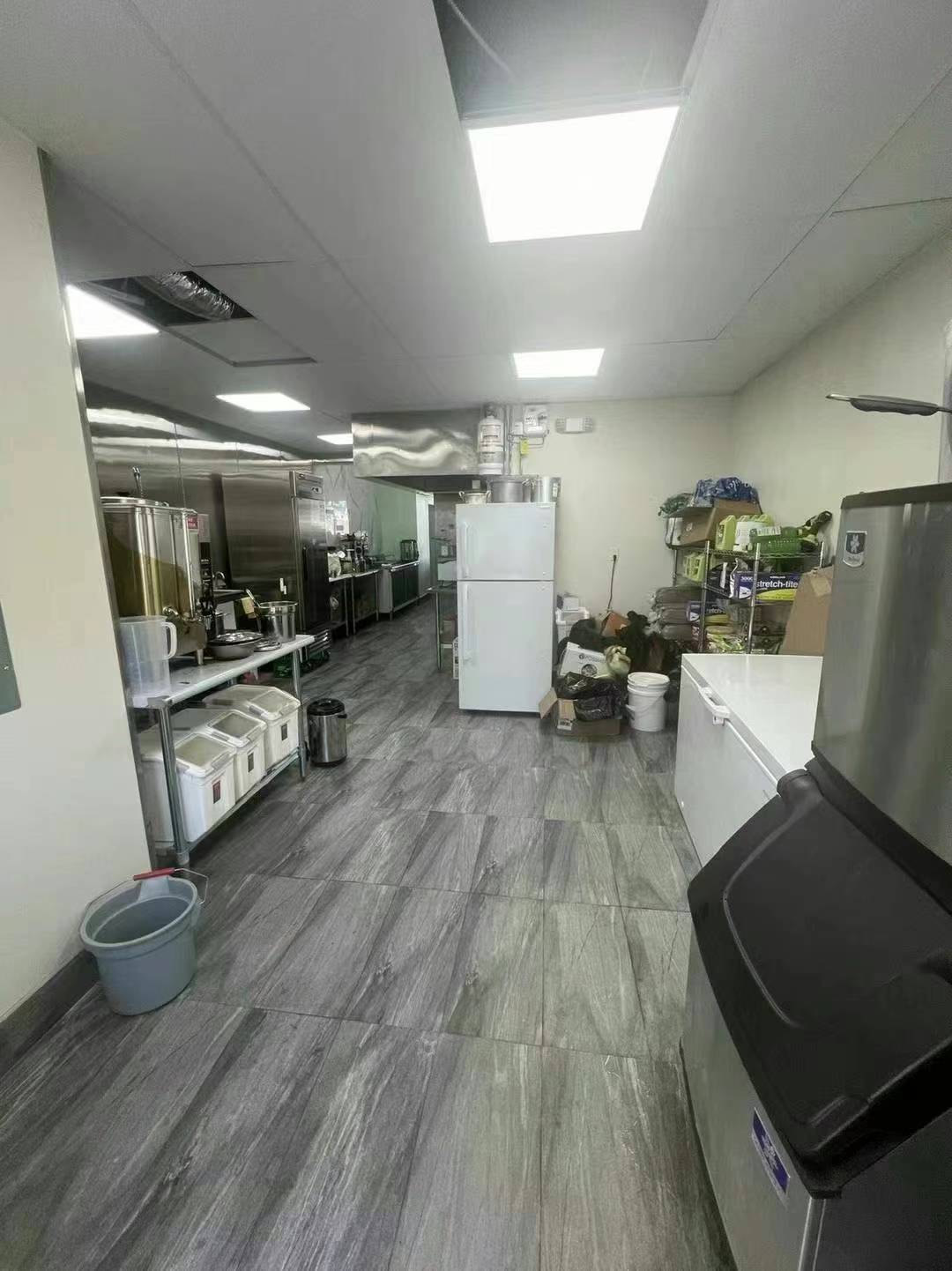 面积有850尺左右,月租3500有现成油锅,排风,gas管道。