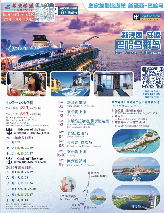 🌊 推荐行程一:新泽西 ⇌ 巴哈马