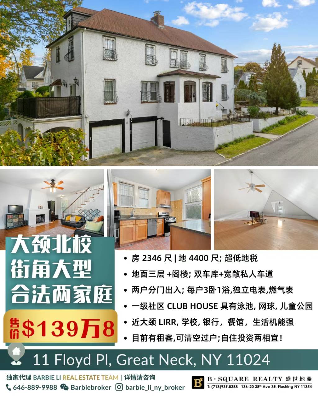 🌍近大颈 LIRR, 学校, 银行,餐馆,生活机能强
