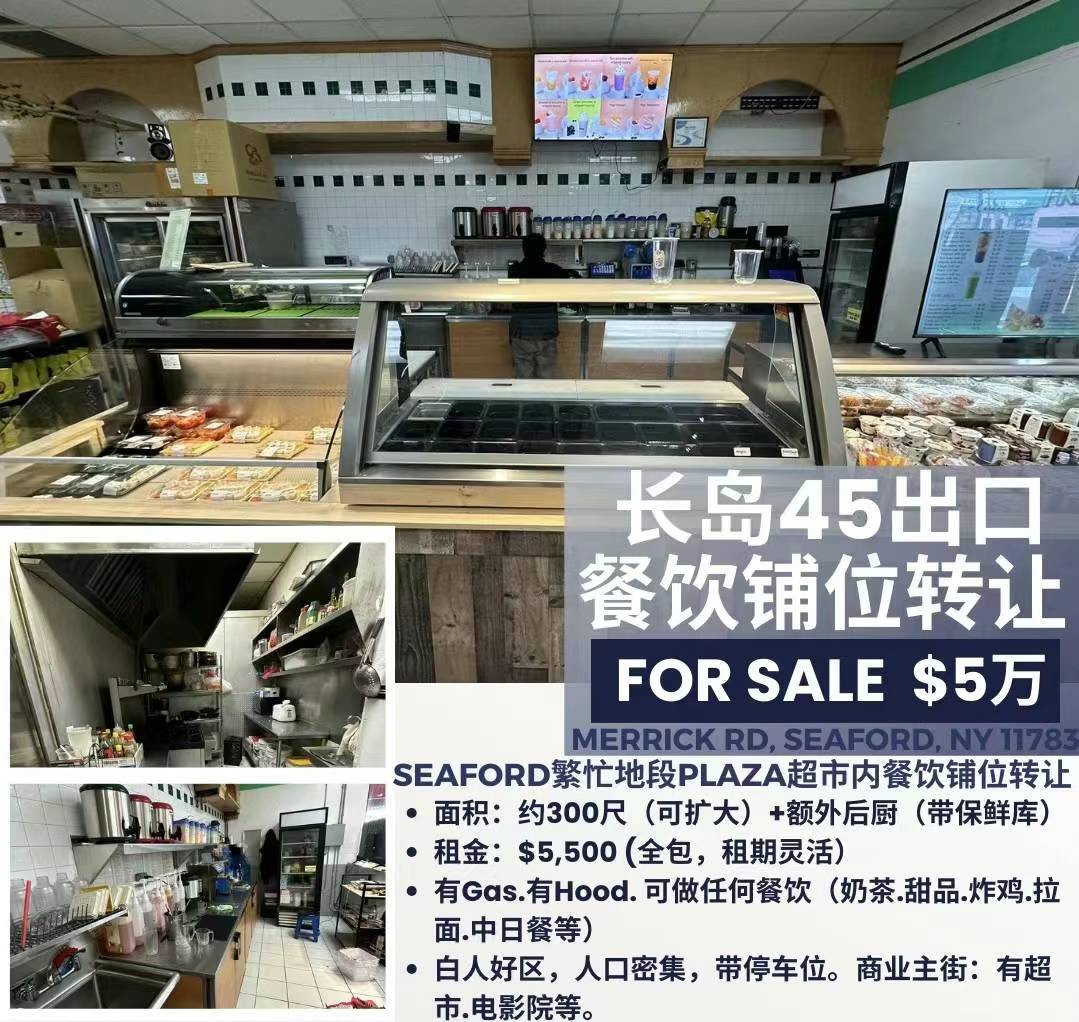 周二统一约看💟长岛45出口Seaford繁忙地段Plaza超市内餐饮铺位转让 $5万💟