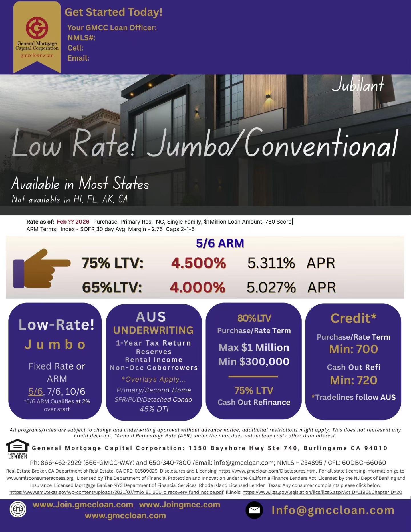 • 利率:5/6 ARM 超低利率