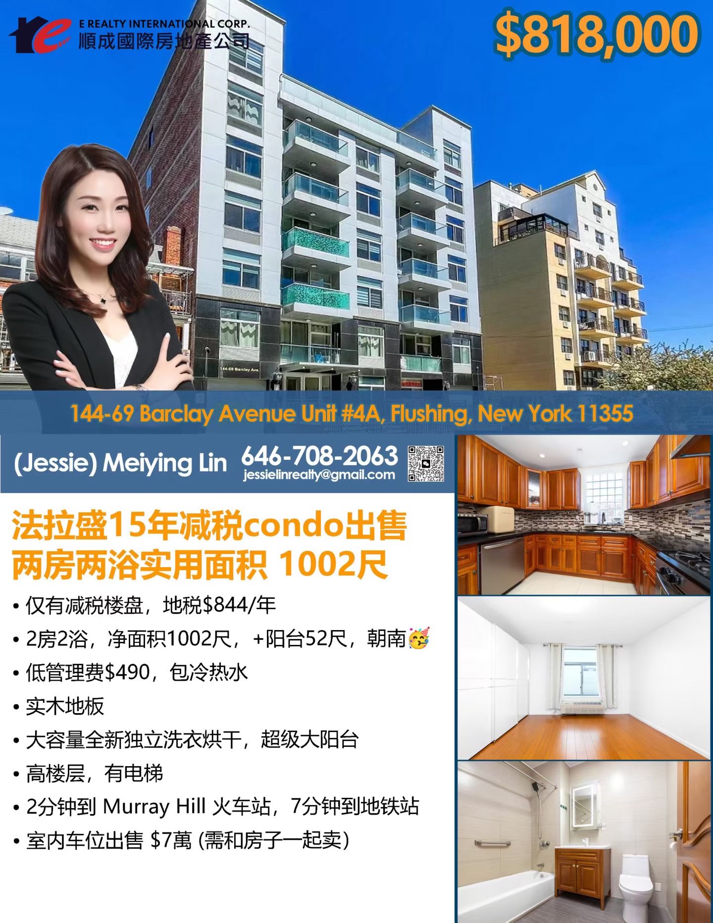 • 法拉盛稀缺减税楼盘:15 年减税政策,地税仅 $844/年,持有成本低,极大提升投资回报率
