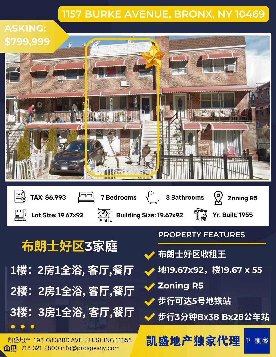 🔵Bronx布朗士好区3家庭,收租王,投资首选