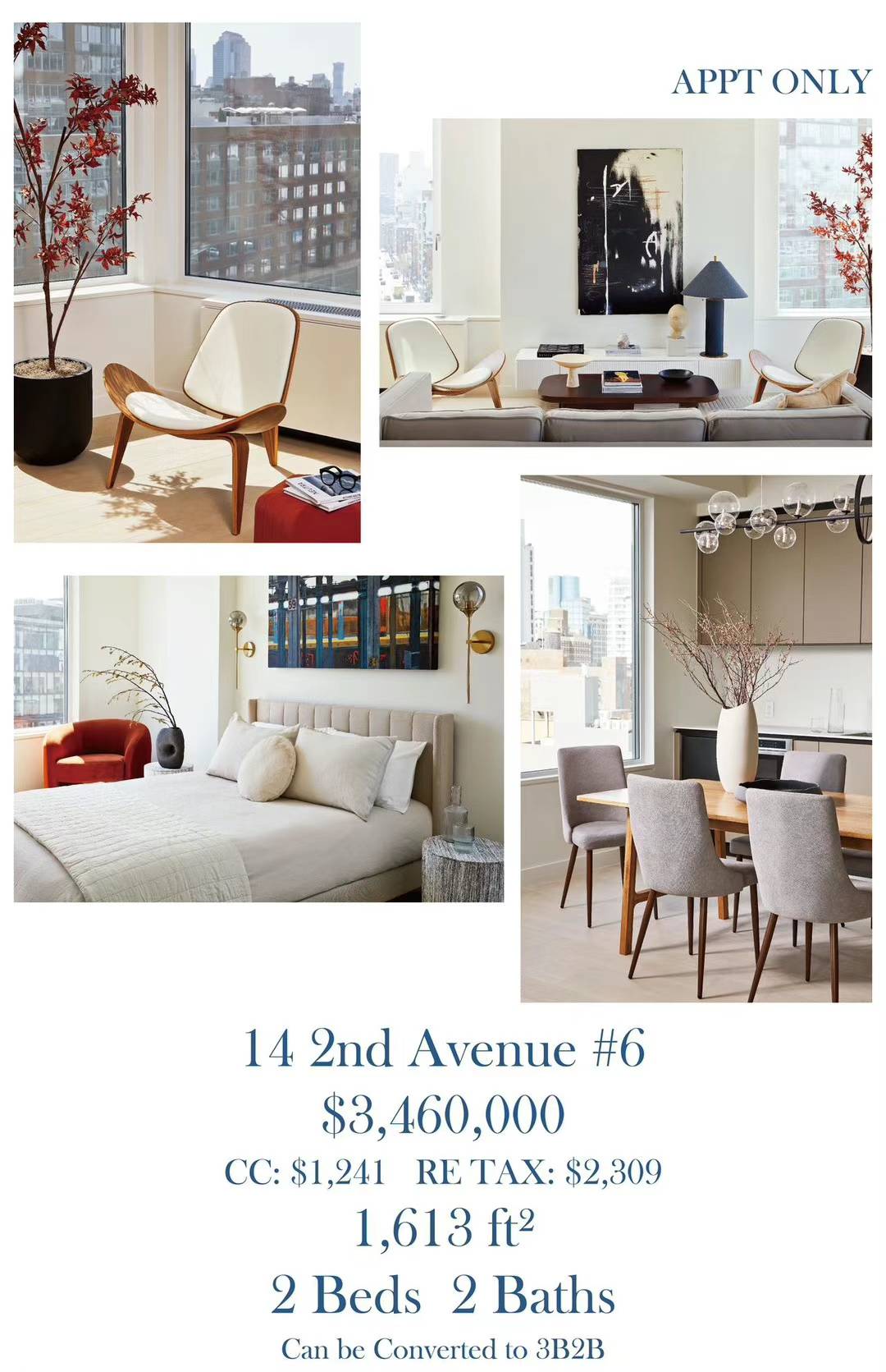 One Realty Global第一地产诚挚地邀请您参加我们位于曼哈顿14 2nd Ave的豪华公寓公展,您将亲自体验这栋位于纽约心脏地带的梦想之家的优雅和舒适, 感受其顶级的设施和精致的设计. 敬请回复以确认您的出席. 我们的公展将在4月13日周六下午1点至3点举行.