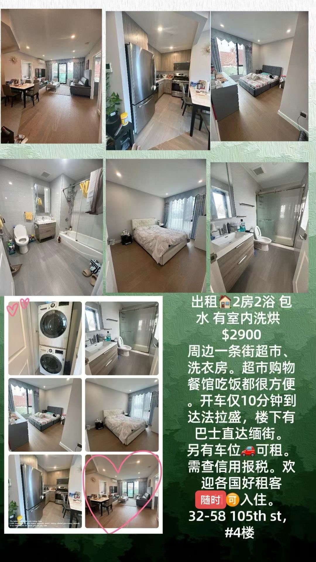 艾姆赫斯特出租|最新出租|2房2浴|包水+室内洗烘|$2900|10分钟到法拉盛|随时入住