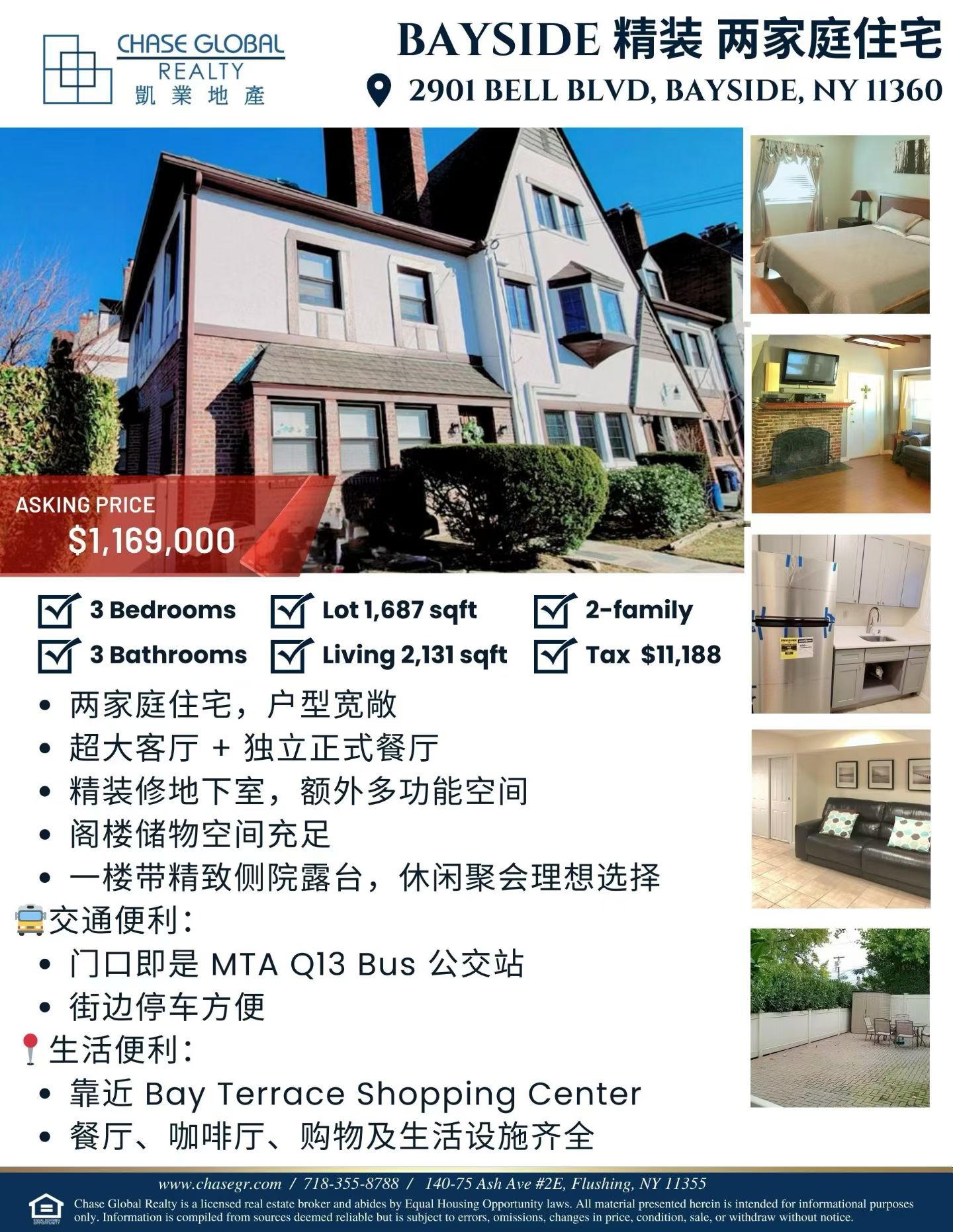 如果你正在寻找 Bayside 两家庭住宅 或希望在皇后区购买 自住+投资兼具价值的物业,这套房源非常值得了解。欢迎咨询详情与预约看房。