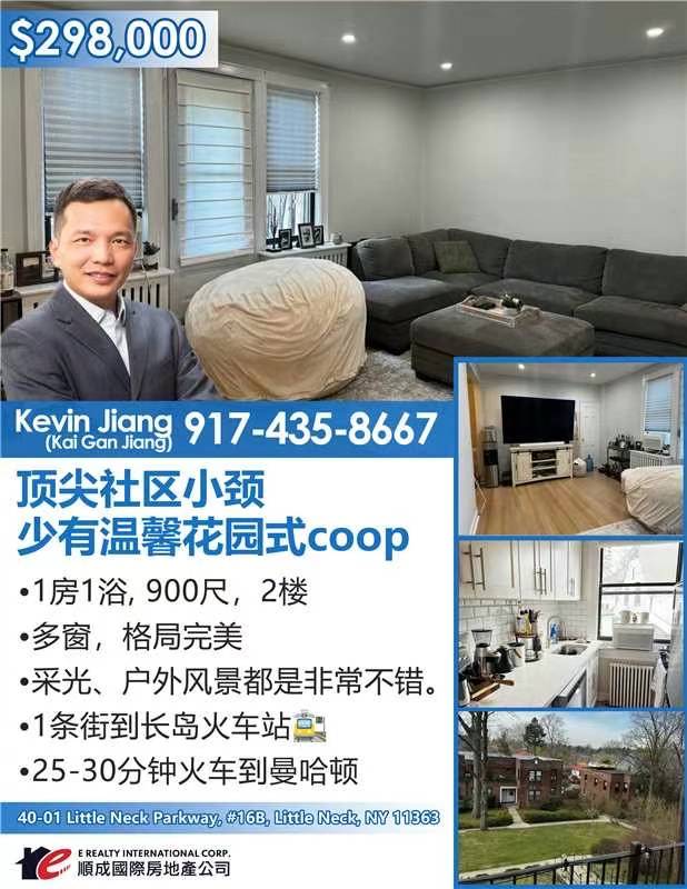 美丽的花园式coop,面积约900尺,1b1b,位于二楼。 景色优美,多窗。 最近重新装修的内饰、大理石台面以及不锈钢器具(包括洗碗机)和早餐角、带漂亮阳台的大客厅。 室内自助洗衣机,可宠物,距离 LIRR 两个街区。 维护费仅1084左右,包括水费和煤气费。