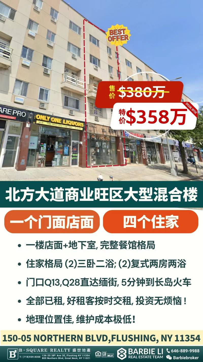 法拉盛中心大型混合楼 一个门面店面 +四个住家