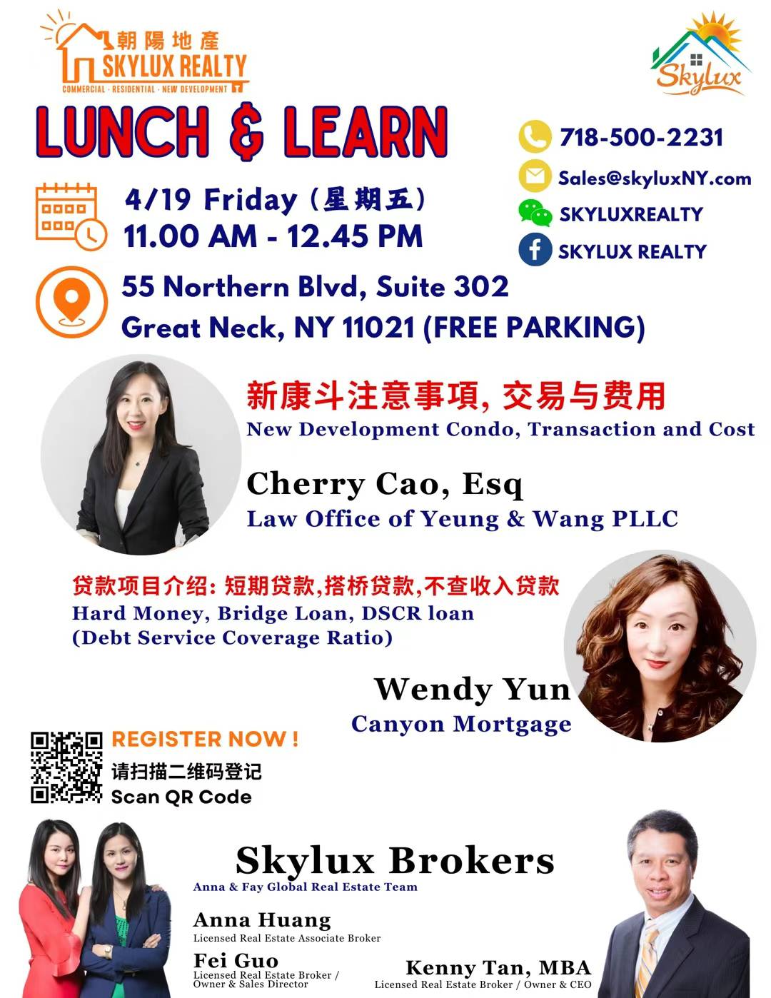 We are honored to have Attorney Cherry Cao, Esq and Wendy Yun Mortgage as our speakers. Seats are limited, please RSVP. After class lunch and networking.