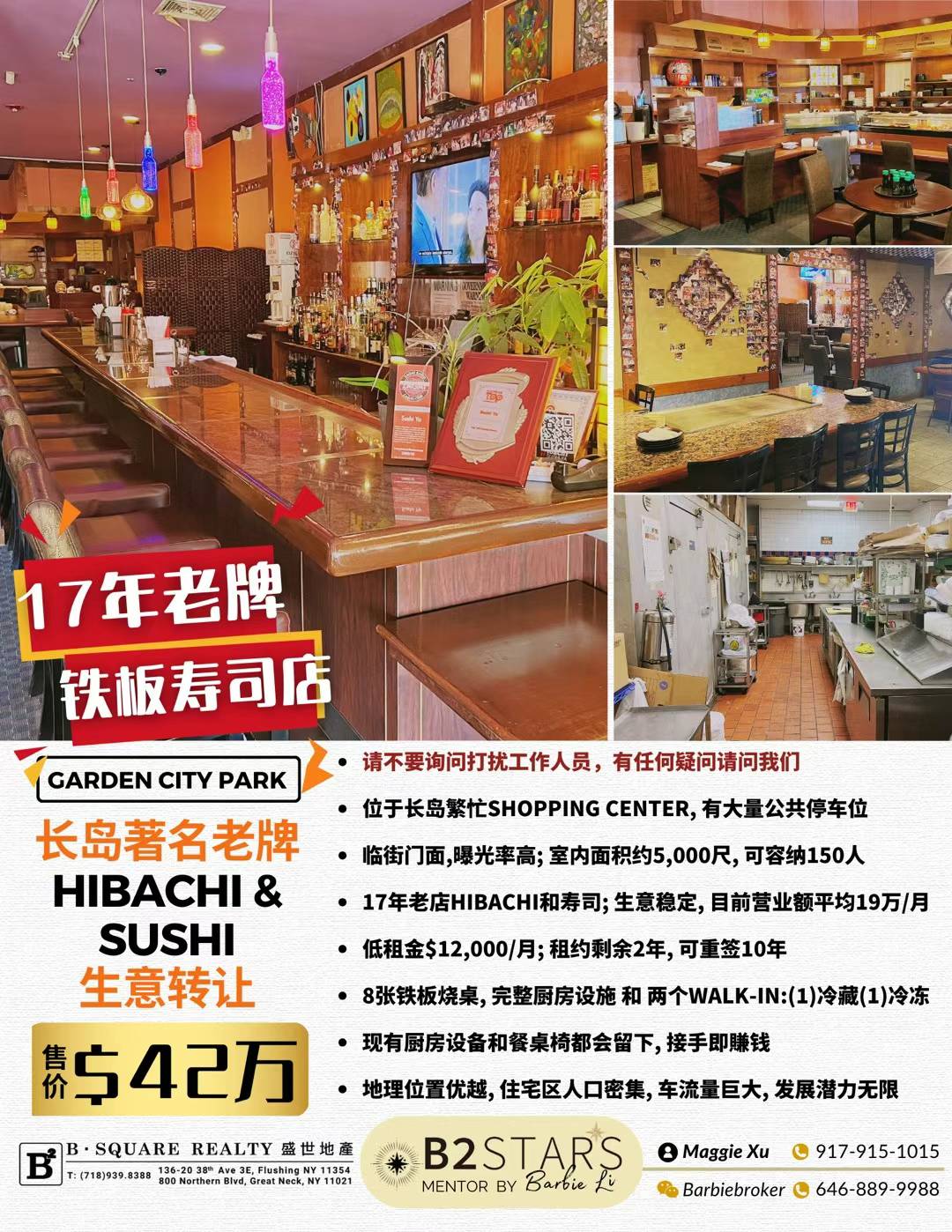 🌟长岛著名老牌 HIBACHI & SUSHI 生意转让