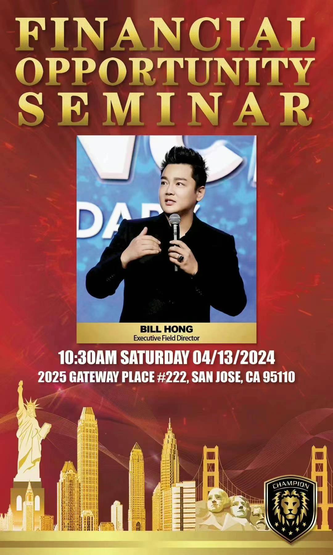 ❤️别错过PFA全美总裁,16颗钻的Bill Hong今天上午在我们硅谷公司举办的商机讲座!