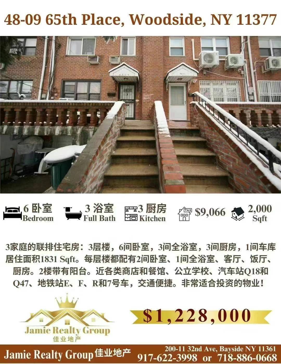 48-09 65Pl,Woodside 木边区,地面3层,4电表3瓦斯表