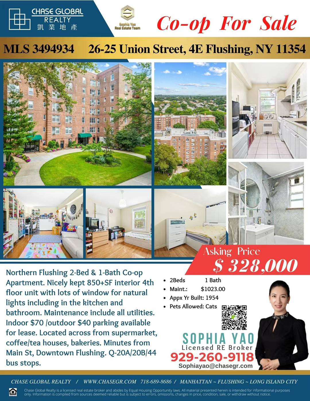 北法拉盛2房1浴Coop 仅售32万8