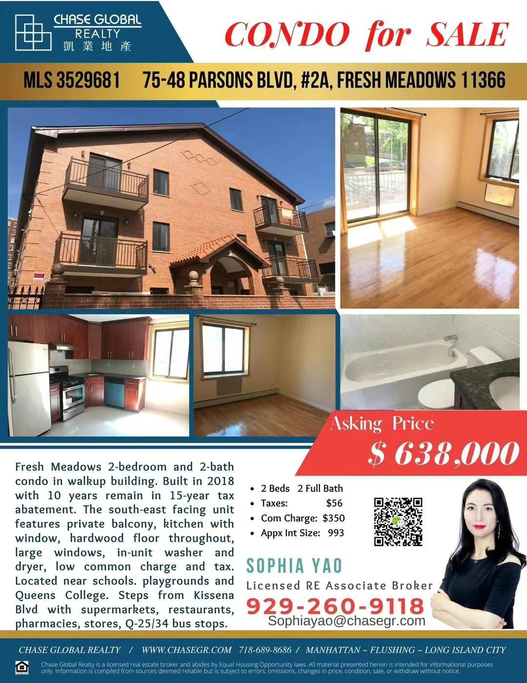地段佳,周边配套全,交通便利,门口有巴士Q25、Q65、Q20B直达mainst。在二楼,地址: 75-48 parsons boulevard, #2A, Freshmeadow, NY 11366