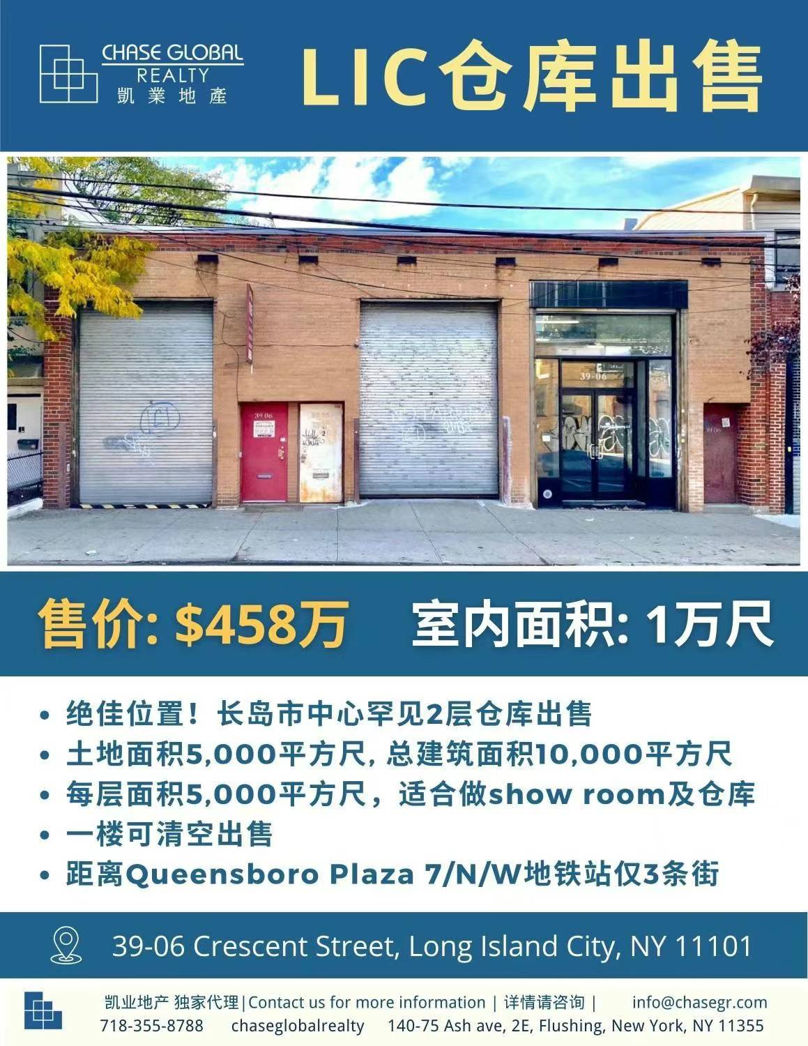 凯业地产潜力大回报好 仓库和商住楼 Commercial Building 出租出售!不要错过!请拨打咨询热线电话718-355-8788