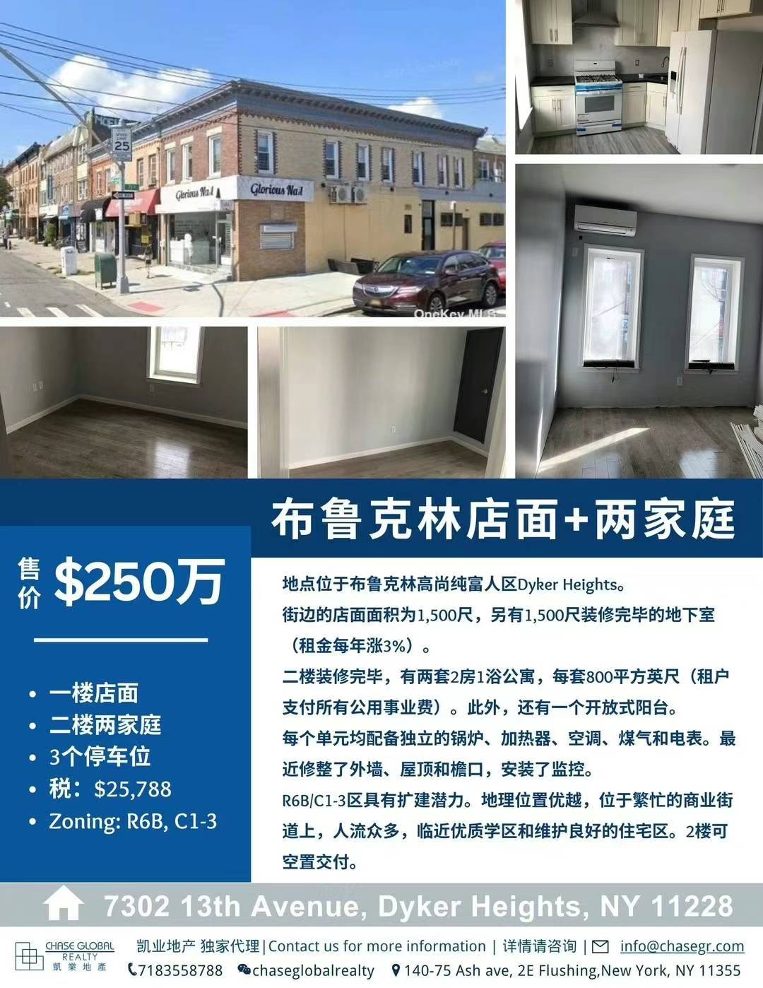 🔹地点位于布鲁克林高尚纯富人区Dyker Heights,人流量高,繁华街道。优质学区,交通便利.