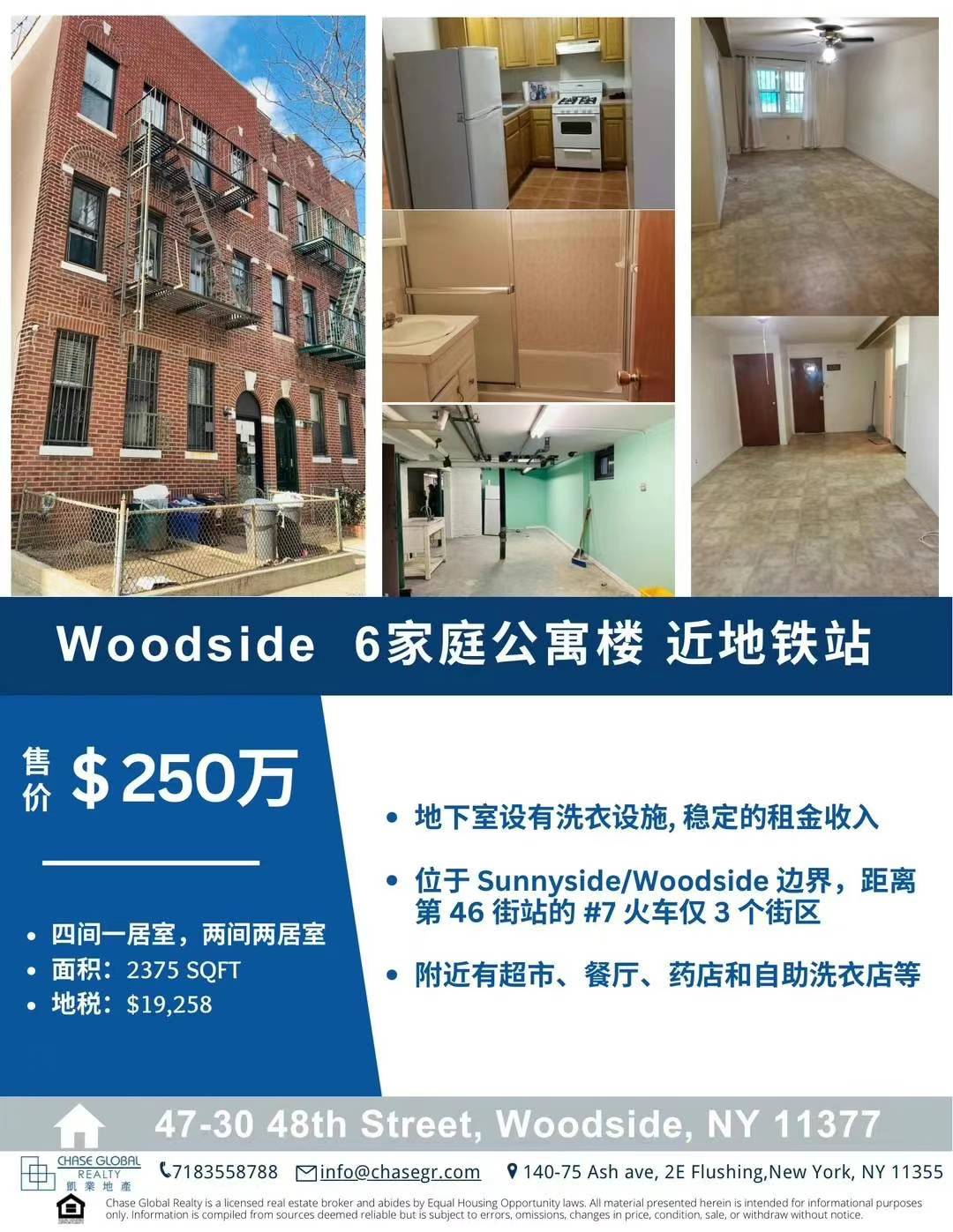 🔹位于Sunnyside/Woodside边界,距46街站的号地铁仅3条街,方便交通需求。能提供稳定的租金收入,地下室设有洗衣设施。