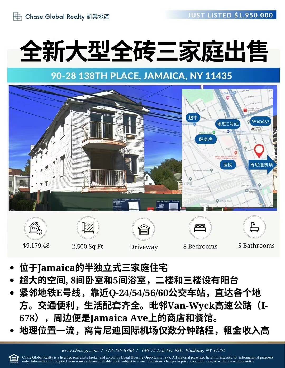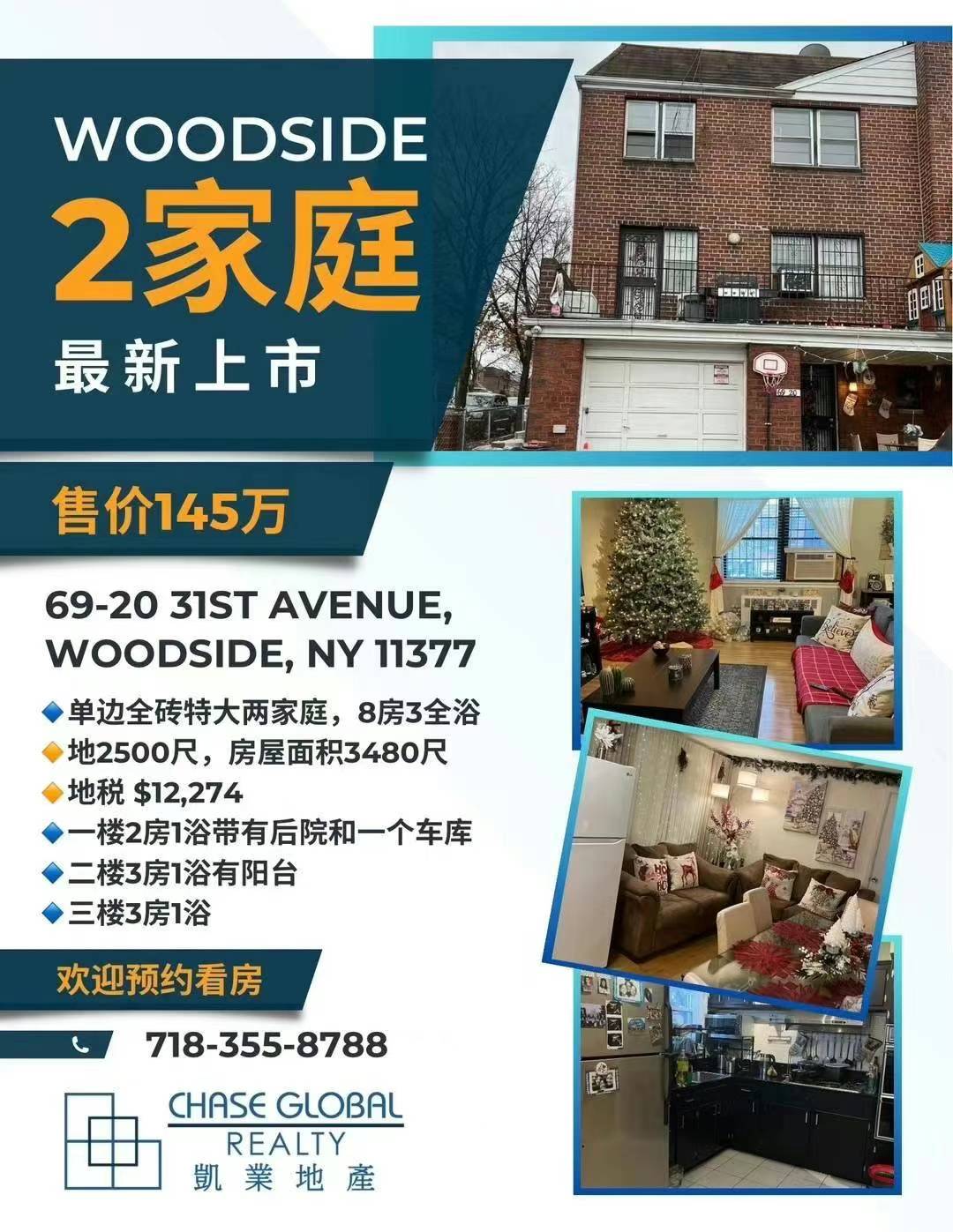 凯业地产两家庭&三家庭房源出售推荐!不要错过!请拨打咨询热线电话718-355-8788