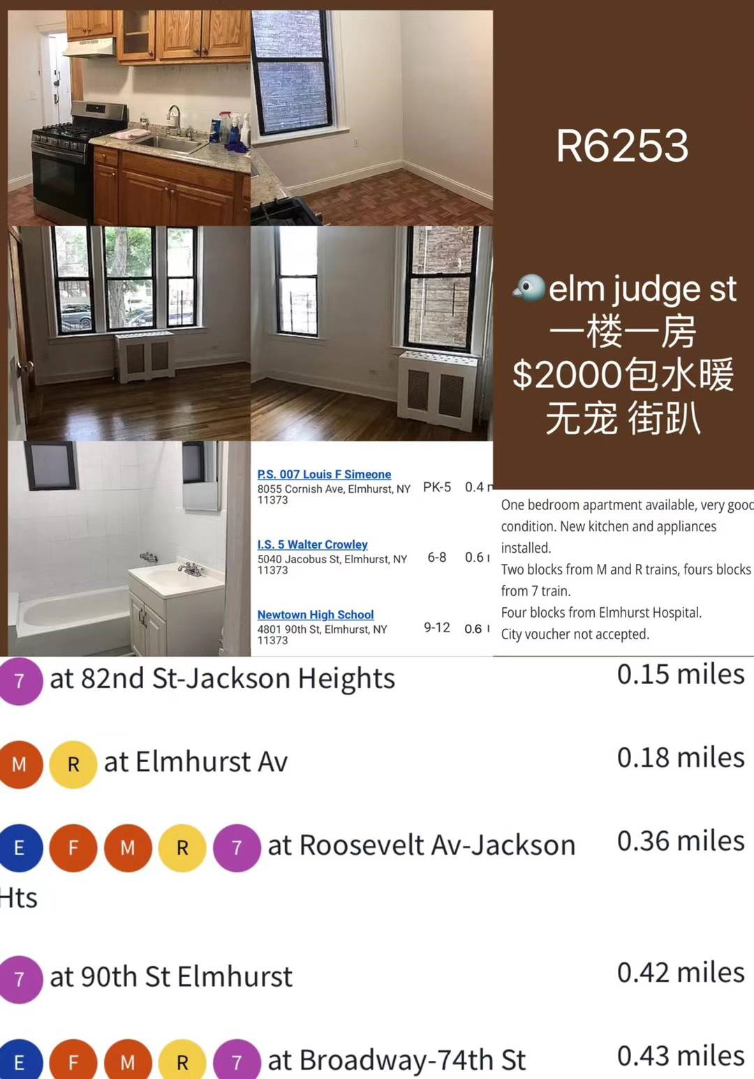 1⃣️个一房1⃣️个四房5⃣️个三房分别在法拉盛flushing 贝赛bayside , 艾姆赫斯elmhurst , 白石镇Whitestone,大学点college point 欧松公园ozone park 🈶️阳台 有车位 室内烘洗 分体冷暖 🉑️宠 求各位有意的房客及时短信联系我帮助以下房东早日脱手减负🙏3479885318