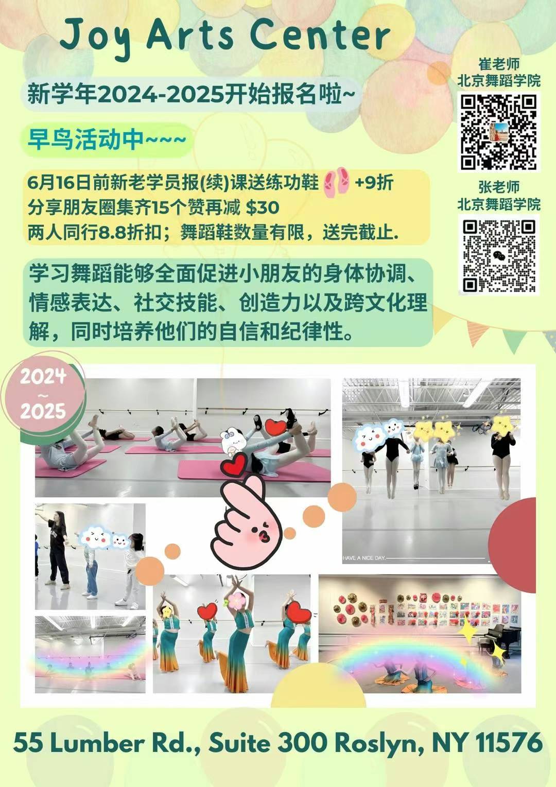 学习舞蹈能够全面促进小朋友的身体协调🩰、情感表达💬、社交技能💃、创造力🚀以及跨文化理解,同时培养他们的自信和纪律性😎。